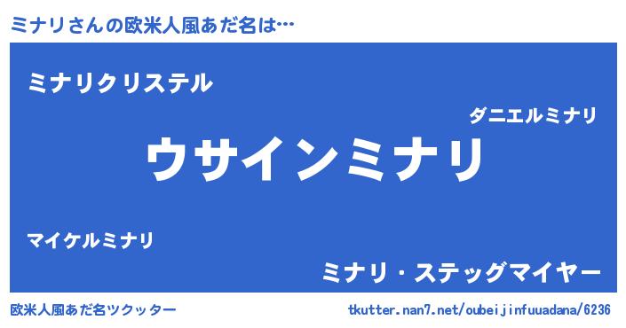 | ヘコむあだ名 | 『ミナ太郎』『酢こんぶ』『ミナにー』 |