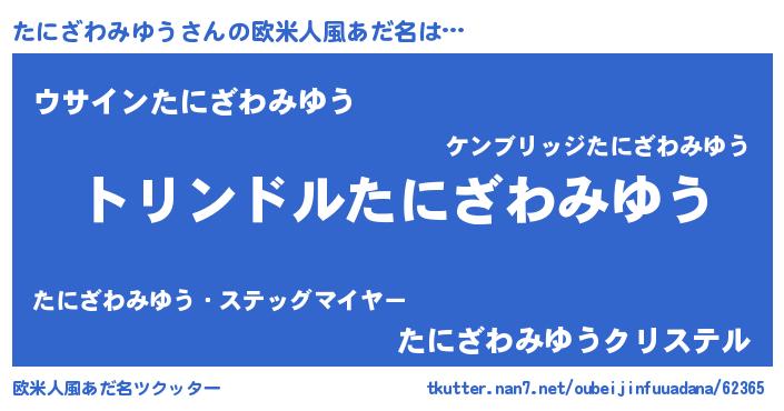 | 男性向けラノベタイトル風あだ名 | 『たにざわみゆう~年齢イコール彼女いない歴の魔法使い~』 |