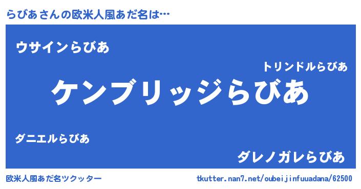 | ヘコむあだ名 | 『らびを』『豆乳』『らびふぇ~』 |