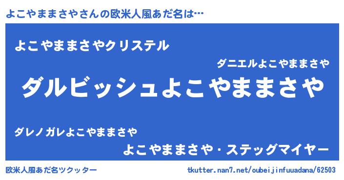 | 男性向けラノベタイトル風あだ名 | 『よこやままさやという概念が存在しない退屈な世界 』 |