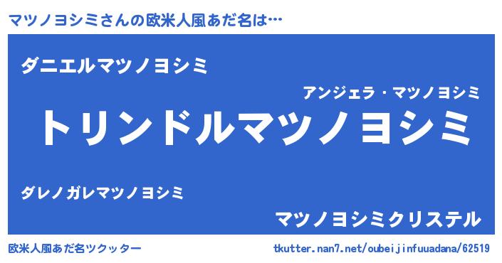 | 男性向けラノベタイトル風あだ名 | 『マツノヨシミスレイヤー』 |