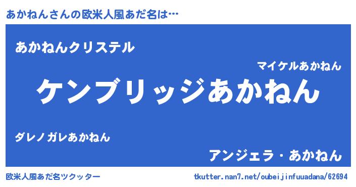 | 男性向けラノベタイトル風あだ名 | 『Re:あかねんから始める異世界生活』 |