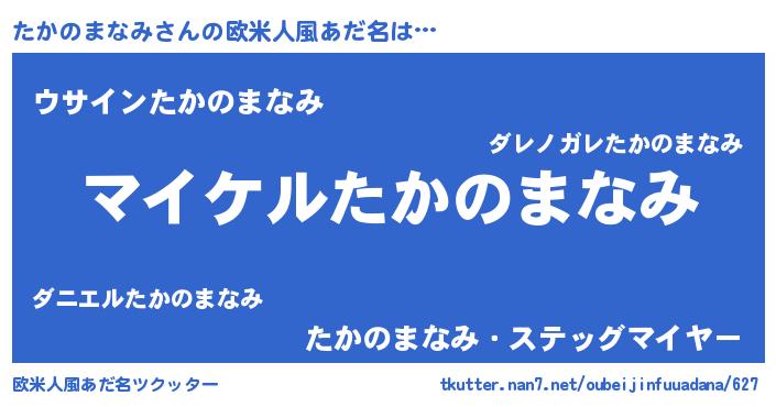 | 男性向けラノベタイトル風あだ名 | 『たかのまなみの憂鬱』 |