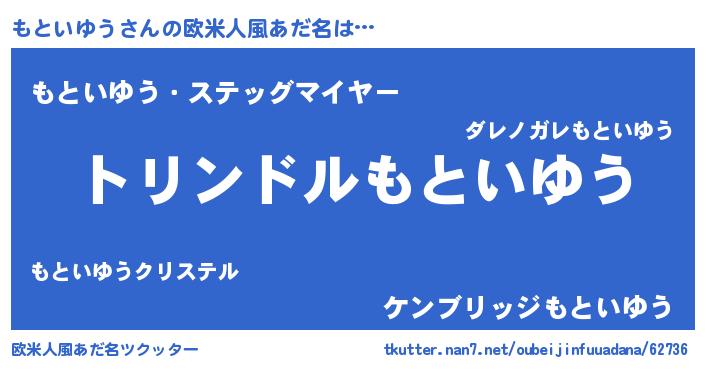 | 男性向けラノベタイトル風あだ名 | 『もといゆう~年齢イコール彼女いない歴の魔法使い~』 |