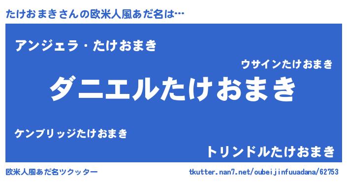 | 男性向けラノベタイトル風あだ名 | 『ノーゲーム・ノータケオマキ』 |