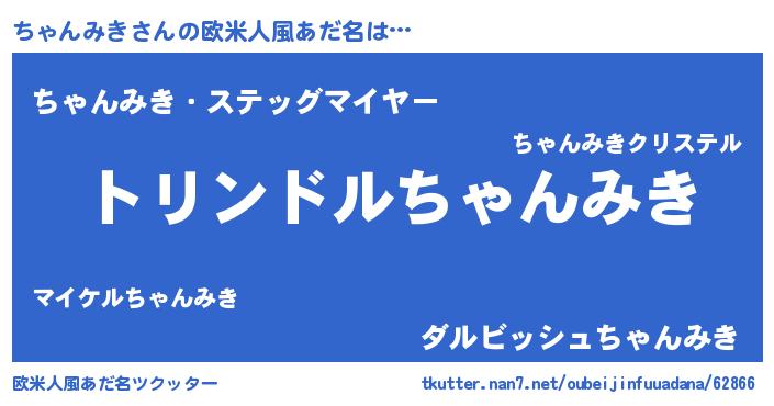 | 男性向けラノベタイトル風あだ名 | 『ちゃんみき~年齢イコール彼女いない歴の魔法使い~』 |