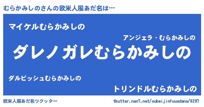 | 女子向けラノベタイトル風あだ名 | 『乙女ゲームの破滅フラグしかない悪役むらかみしのに転生してしまった…』 |