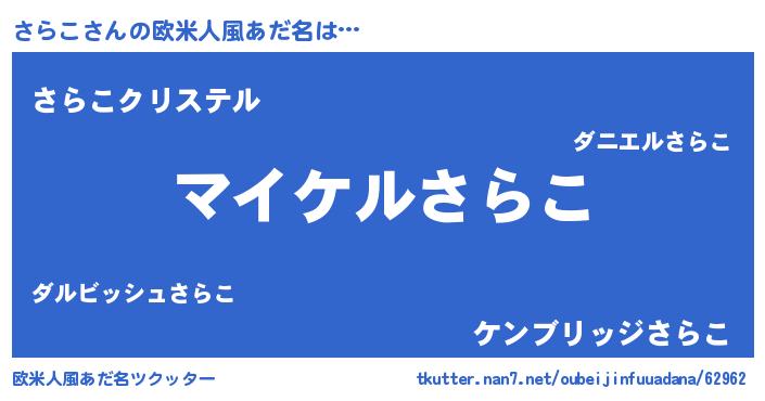 | ヒーロー風カッコイイあだ名 | 『スーパーサラコ』『ウルトラさらこマン』 |