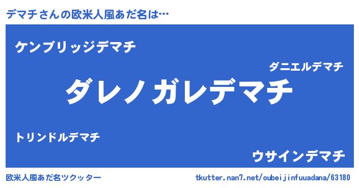 | 意味不明あだ名 | 『住所不定無職デマチ(4歳)』『自称デマチ』 |