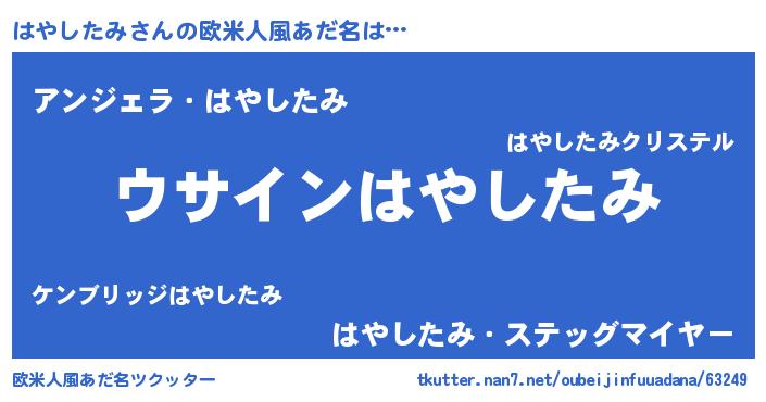 | 意味不明あだ名 | 『とにかく怪しいはやしたみ』 |