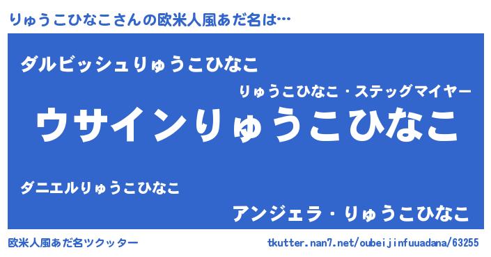 | 男性向けラノベタイトル風あだ名 | 『りゅうこひなこの嫁は女の子じゃないと思った?』 |