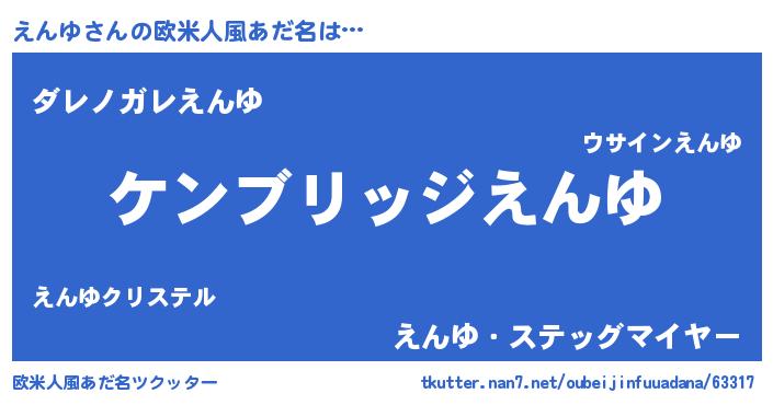 | 男性向けラノベタイトル風あだ名 | 『Re:えんゆから始める異世界生活』 |