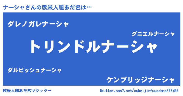 | 男性向けラノベタイトル風あだ名 | 『ナーシャ~年齢イコール彼女いない歴の魔法使い~』 |