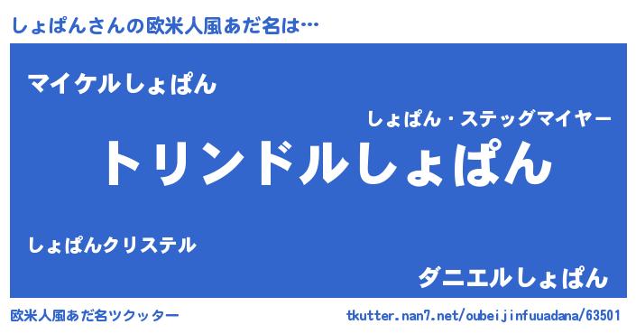 | 男性向けラノベタイトル風あだ名 | 『転生したらしょぱんだった件』 |