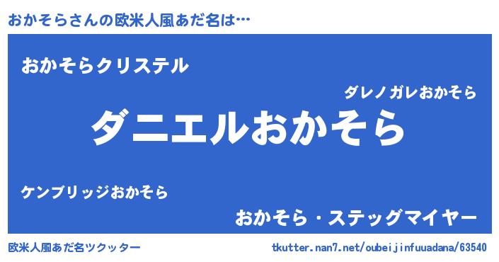 | 女子向けラノベタイトル風あだ名 | 『おかそら恋絵巻』『闇のおかそら』 |