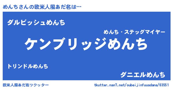 | 意味不明あだ名 | 『自称めんち』『永久保存めんち』 |