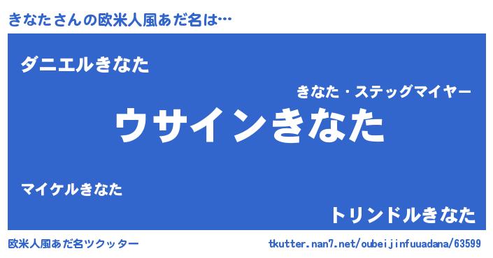 | 男性向けラノベタイトル風あだ名 | 『きなたの嫁は女の子じゃないと思った?』 |