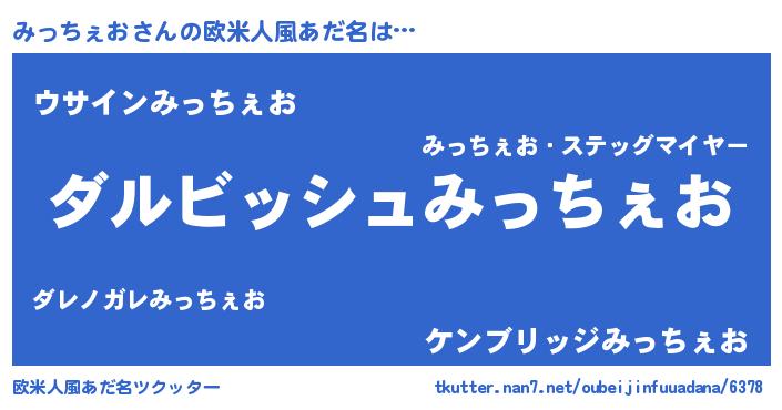 | ヘコむあだ名 | 『みっちぇお(小並感)』『みっ太郎』 |