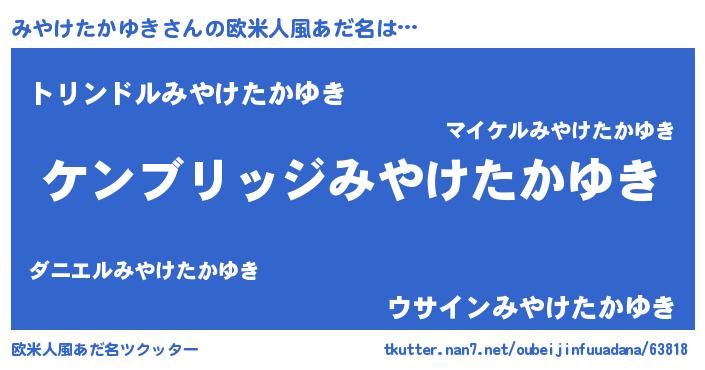 | 女子向けラノベタイトル風あだ名 | 『みやけたかゆきなんてお断りですっ。』 |