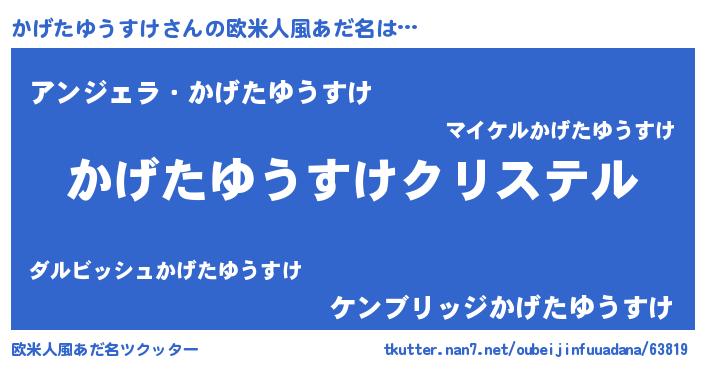 | 男性向けラノベタイトル風あだ名 | 『やはりかげたゆうすけの青春ラブコメはまちがっている 』 |