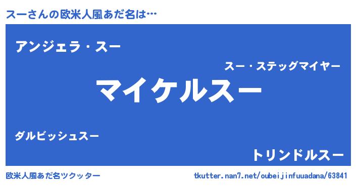| 男性向けラノベタイトル風あだ名 | 『スーの憂鬱』『はたらくスーさま!』 |