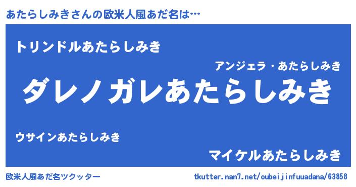 | 男性向けラノベタイトル風あだ名 | 『魔弾の王とあたらしみき』 |