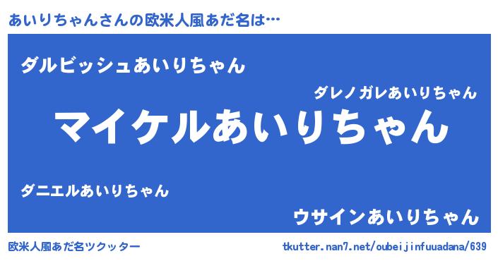 | 男性向けラノベタイトル風あだ名 | 『アイリチャンアートオンライン』 |