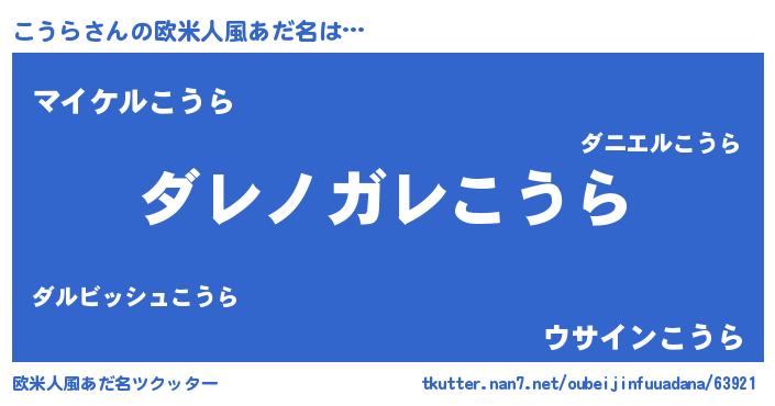 | 意味不明あだ名 | 『住所不定無職こうら(74歳)』 |