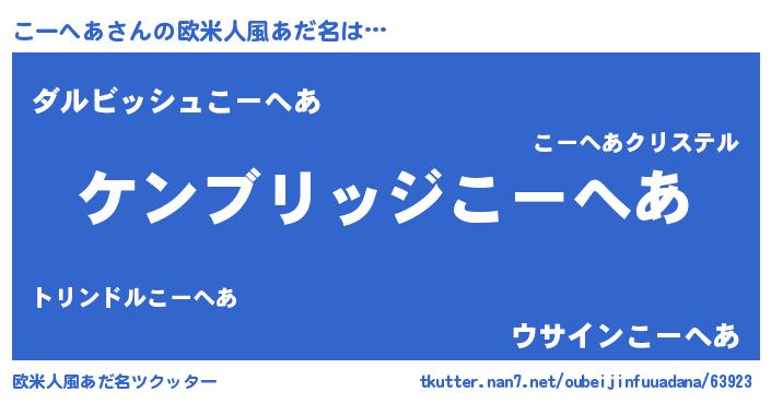 | 意味不明あだ名 | 『自称こーへあ』『永久保存こーへあ』 |