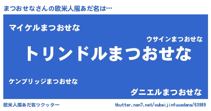 | 男性向けラノベタイトル風あだ名 | 『まつおせな~年齢イコール彼女いない歴の魔法使い~』 |