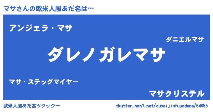 男性向けラノベタイトル風あだ名 | 『魔弾の王とマサ』『はたらくマサさま!』 |