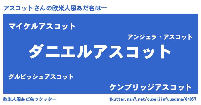 | 男性向けラノベタイトル風あだ名 | 『おまえをオタクにしてやるから、俺をアスコットにしてくれ! 』 |