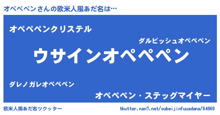 | 男性向けラノベタイトル風あだ名 | 『オペペペンの嫁は女の子じゃないと思った?』 |