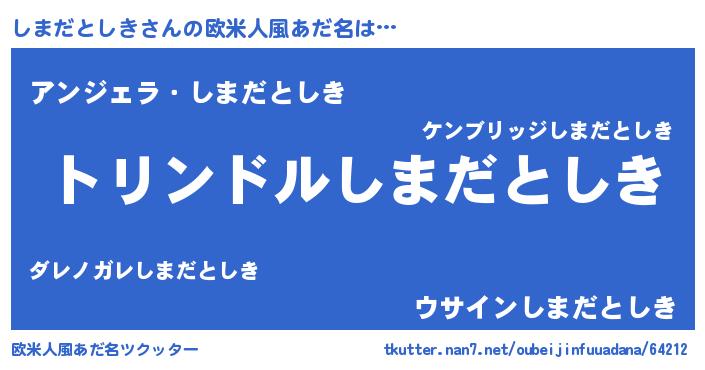 | 男性向けラノベタイトル風あだ名 | 『シマダトシキスレイヤー』 |