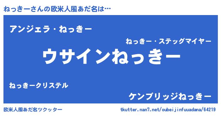 | 男性向けラノベタイトル風あだ名 | 『ねっきーの嫁は女の子じゃないと思った?』 |