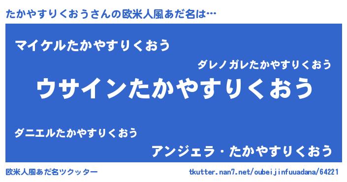 | 女子向けラノベタイトル風あだ名 | 『たかやすりくおう様がみてる』 |