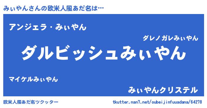 | ヒーロー風カッコイイあだ名 | 『ネオミィヤン』『ウルトラみぃやんマン』 |