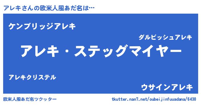 | 意味不明あだ名 | 『自称アレキ』『とにかく怪しいアレキ』 |