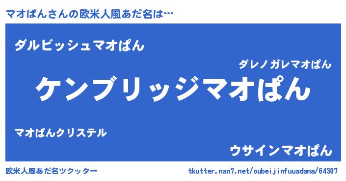 | 男性向けラノベタイトル風あだ名 | 『Re:マオぱんから始める異世界生活』 |