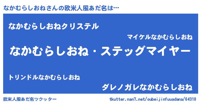 | 男性向けラノベタイトル風あだ名 | 『冴えないなかむらしおねの育てかた』 |