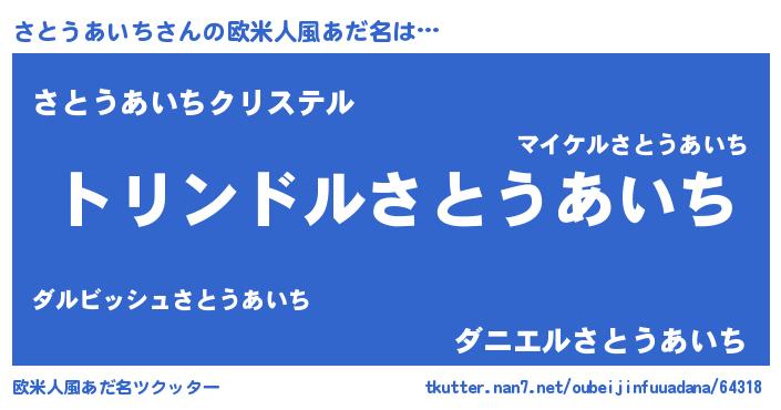 | 男性向けラノベタイトル風あだ名 | 『さとうあいち~年齢イコール彼女いない歴の魔法使い~』 |