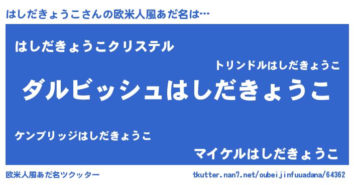 | 意味不明あだ名 | 『永久保存はしだきょうこ』 |