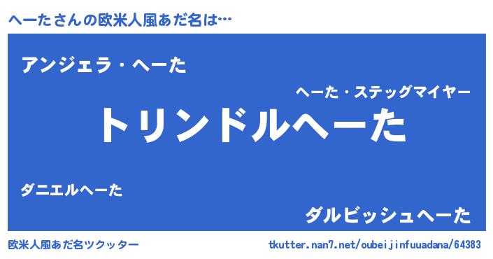 | 男性向けラノベタイトル風あだ名 | 『転生したらへーただった件』 |