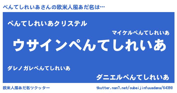 | 女子向けラノベタイトル風あだ名 | 『ぺんてしれいあは平凡を望む』 |