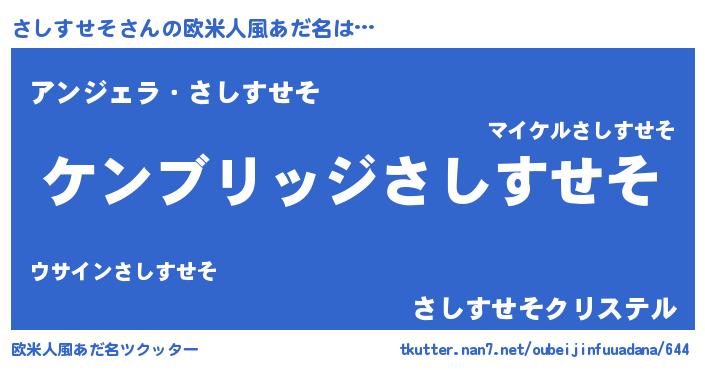 | 男性向けラノベタイトル風あだ名 | 『Re:さしすせそから始める異世界生活』 |
