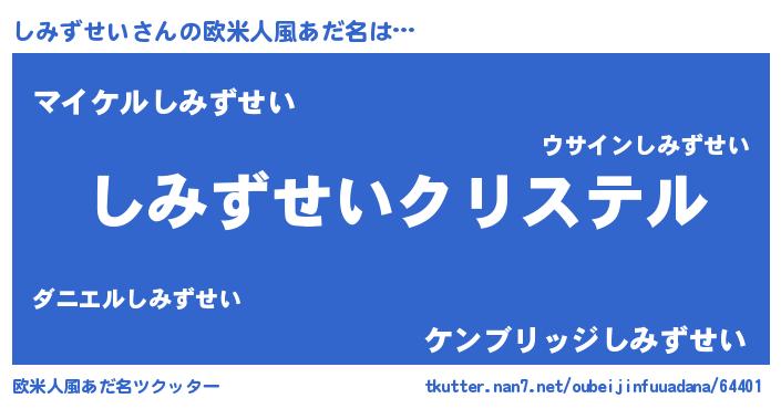 | 胡散臭い通販商品みたいなあだ名 | 『運命の人と巡り会える高級そうな壺…その名も「しみずせい」』 |