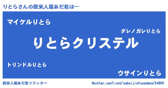 | 意味不明あだ名 | 『りとらフォーエバー』『ペロリンりとら』 |
