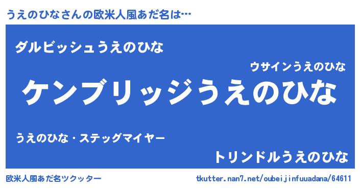 | 男性向けラノベタイトル風あだ名 | 『Re:うえのひなから始める異世界生活』 |