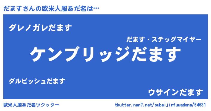 | 意味不明あだ名 | 『自称だます』『住所不定無職だます(50歳)』 |