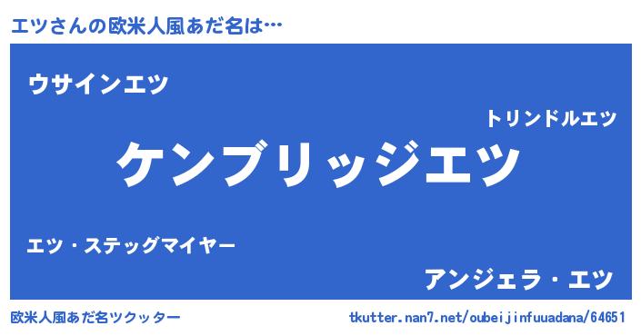 | 女子向けラノベタイトル風あだ名 | 『闇のエツ』『エツの卵を拾いまして』 |